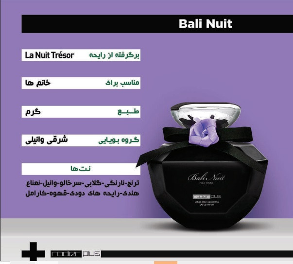 ادکلن بالی نویت رودیر پلاس عطری زنانه است که برای بانوان شیکپوش و خوشسلیقه طراحی شده است. این عطر با شروعی خنک و شفاف، ترکیبی از آکوردهای مرکباتی و تازه دارد که حس آزادی و تازگی را القا میکند. در نت میانی، رایحههای گلهای لطیف جایگزین میشوند و برای استفاده در مهمانیهای شبانه، قرارهای عاشقانه و لحظاتی که میخواهید بدرخشید، ایدهآل است. این ادوپرفیوم در حجم ۱۰۰ میلیلیتر عرضه میشود.