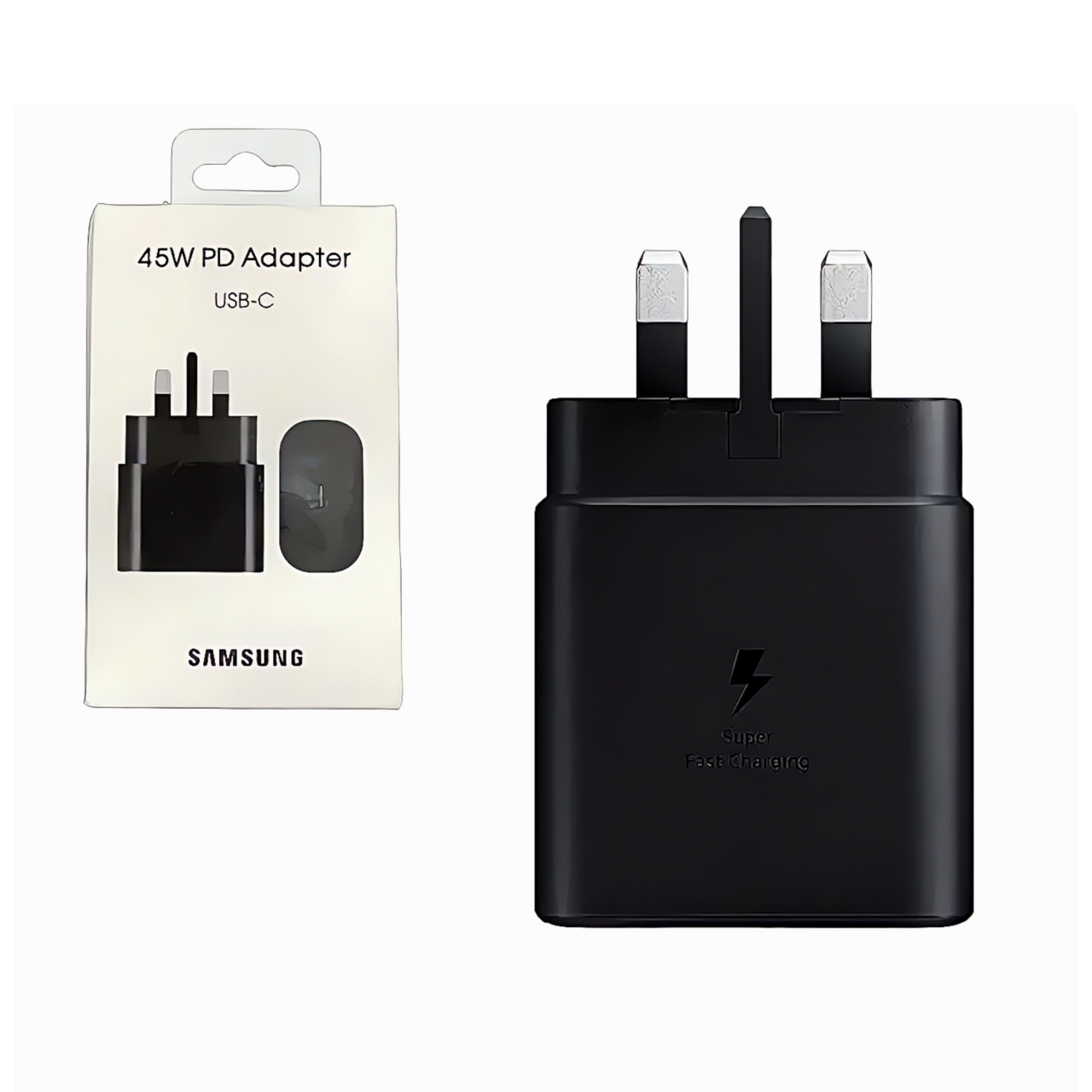 شارژر دیواری 45 وات سامسونگ شارژر اصلی سامسونگ سوپر فست 45 وات مدل Travel Adapter Super Fast 45W شارژر 100 درصد اصلی و اورجینال سامسونگ میباشد. این شارژر دیواری دارای فناوری PD 3.0 است که با استفاده از آن می توانید دستگاه خود را با سرعت بیشتر و با توان 45 وات شارژ کنید. شدت جریان خروجی این شارژر برابر با 5 آمپر است که می توان از آن برای شارژ کردن تبلت هم استفاده کنید. برای این شارژر از چیپ هوشمندی استفاده شده تا با اتصال دستگاه به صورت خودکار جریان مناسب را برای دستگاه تامین کند. درگاه خروجی این محصول هم از نوع USB-C است.این شارژر سایر محصولات و موبایل های سری 2019 به بالا و گوشی هایی که توانایی شارژ سوپرفست را دارند پشتیبانی می کند.