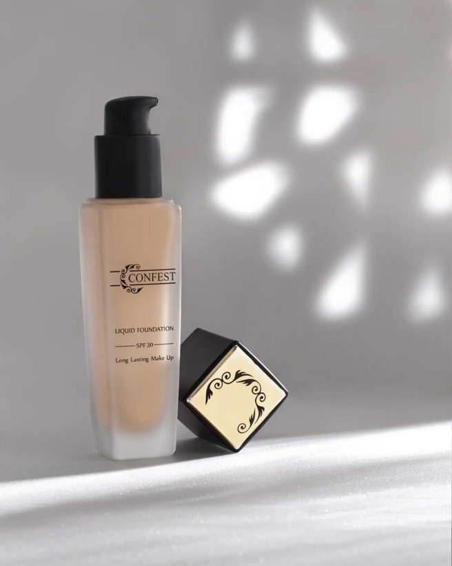 کرم پودر پمپی شیشه ای کانفست حاوی SPF 30 می باشد که باعث محافظت پوست در برابر اشعه آفتاب می شود و در شش تناژ رنگی عرضه می شود: