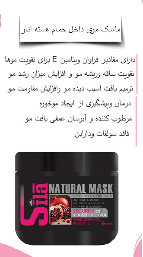 سیلا، ماسک کاسه‌‎ای هسته داخل حمام، دانه انار، تقویت و احیا کننده مو، 500 میل